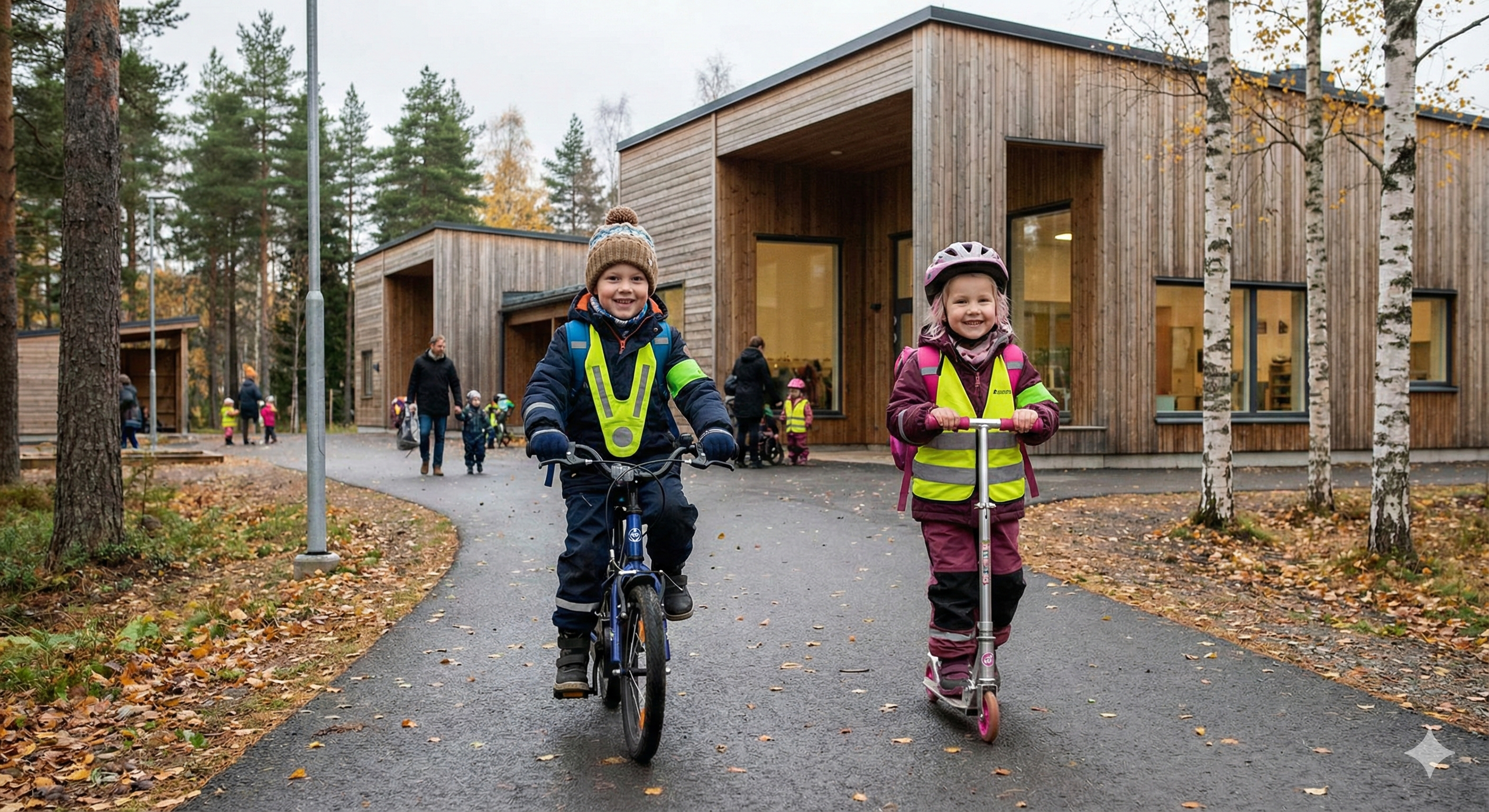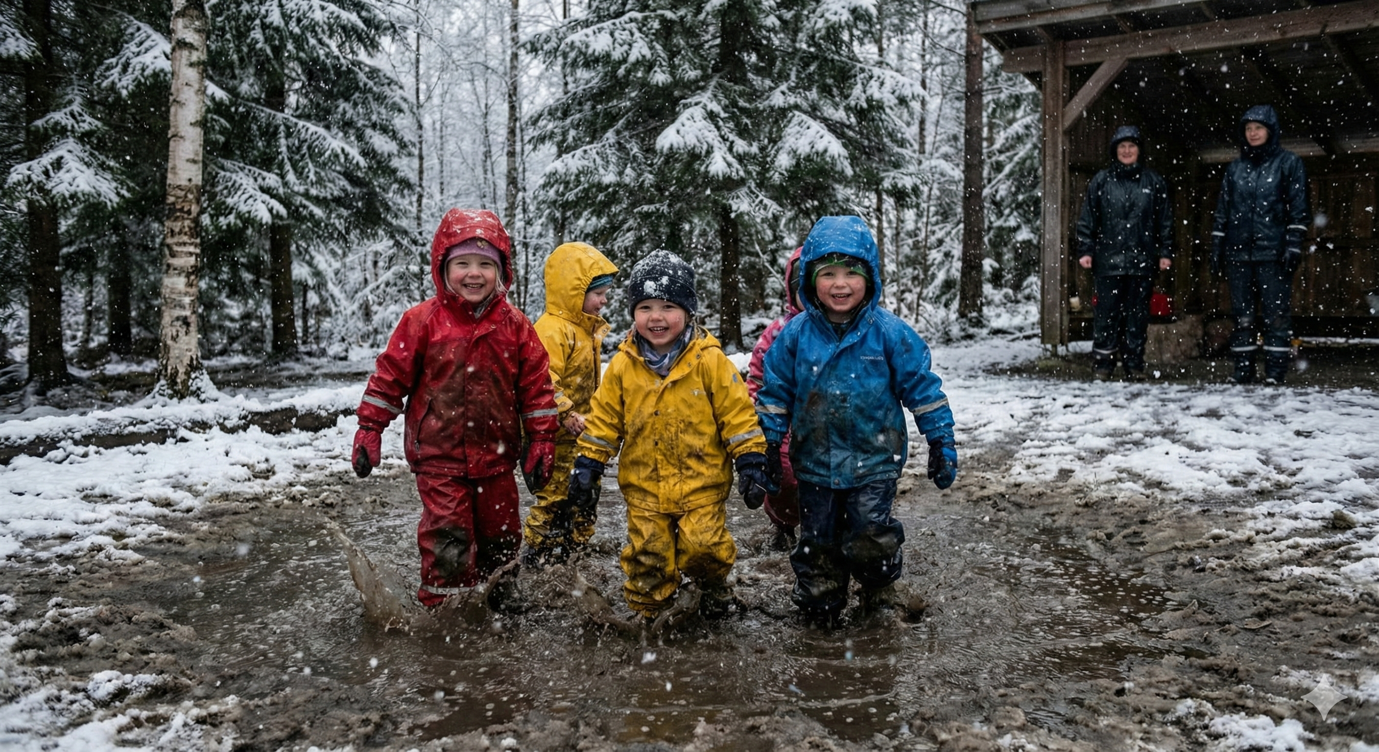Rain, snow, wind. Norwegian kids are outside regardless. There's a saying here: "There's no bad weather, only bad clothing." They spend hours outdoors daily and are healthier for it.